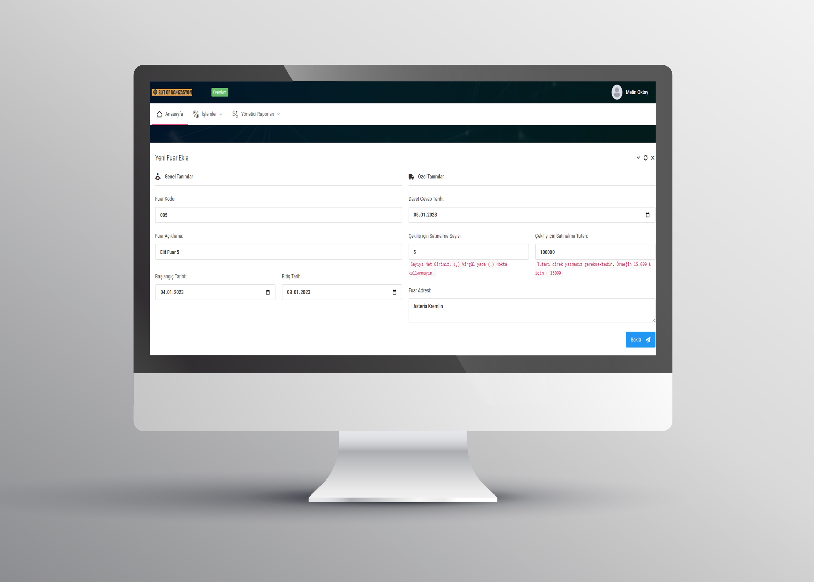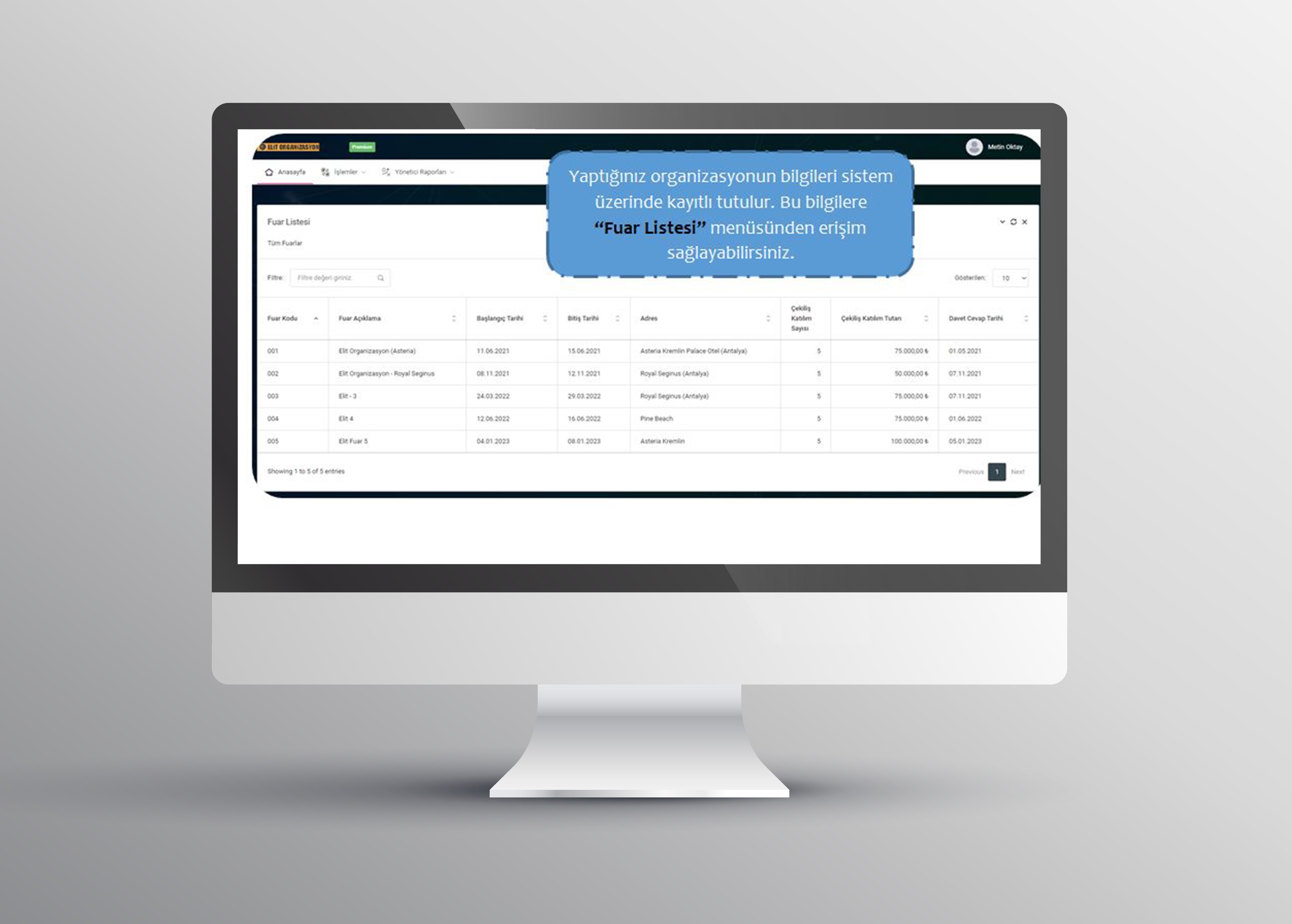 Fuar organizasyonlarında yapılan faaliyetleri sistemsel bir şekilde takip etmek amacıyla geliştirilmiştir.