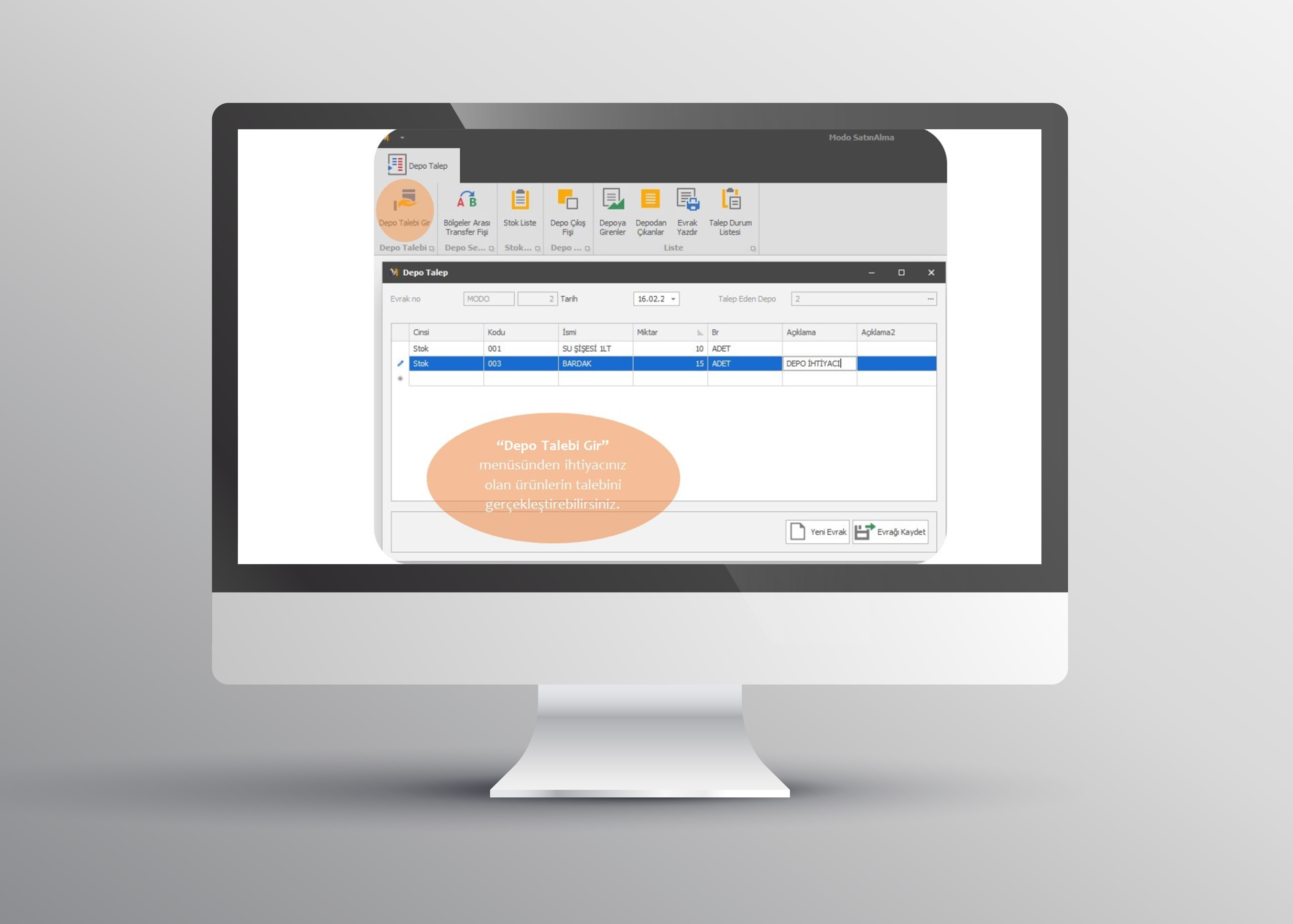 - Bir ürünün miktarı ana depoda sıfır ise o üründen talep yapılamaz.