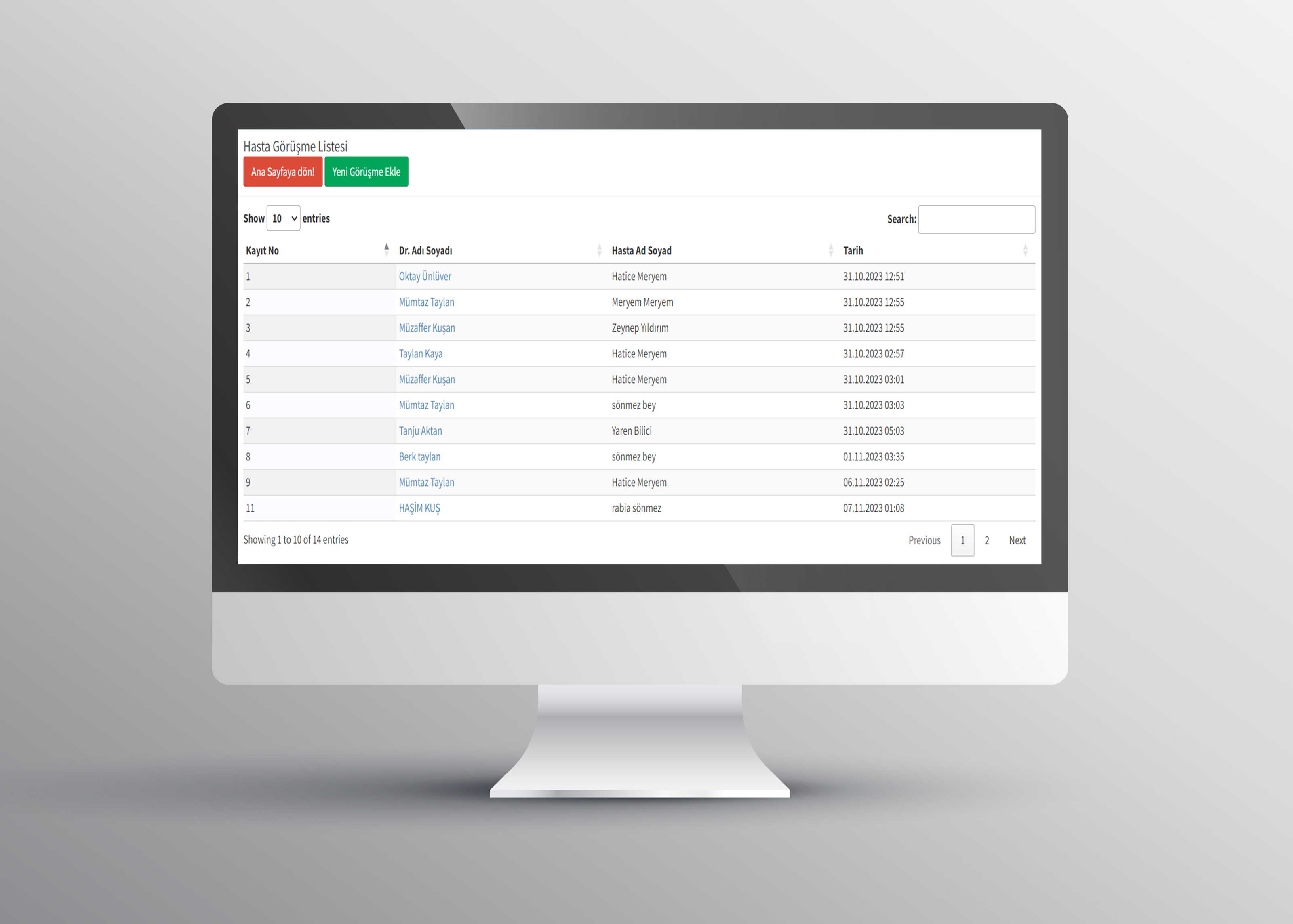 Saha personellerine düşen bilgi ve kendi doktor ziyaretlerini oluşturabildikleri ekranları işlevsellik ve hız üzerine dizayn edilmiştir.