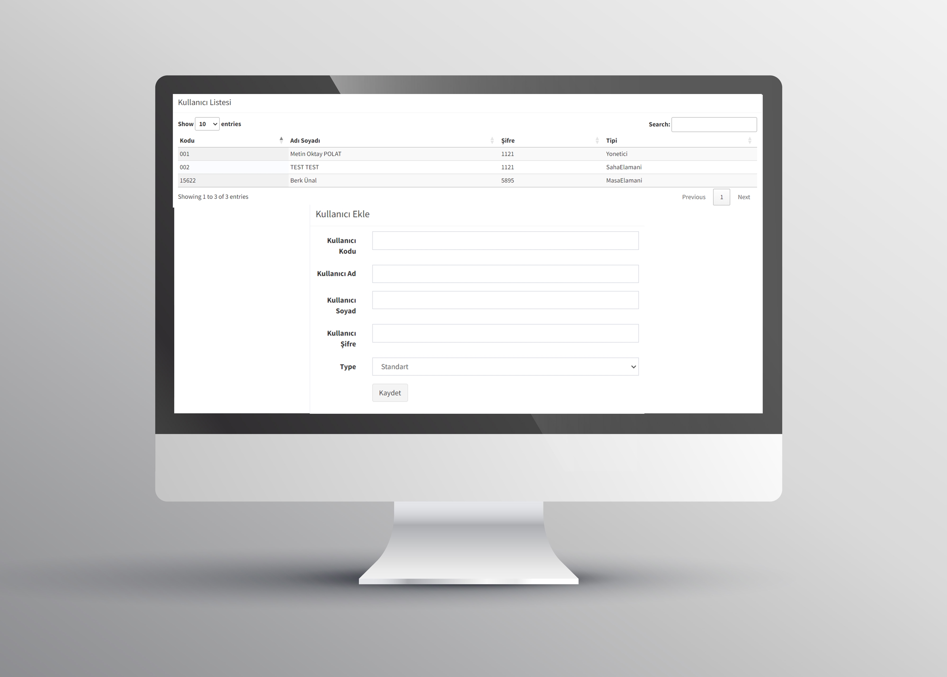 Yetkiler sistemi saha,masa ve yönetici olarak 3 e ayrılmıştır.